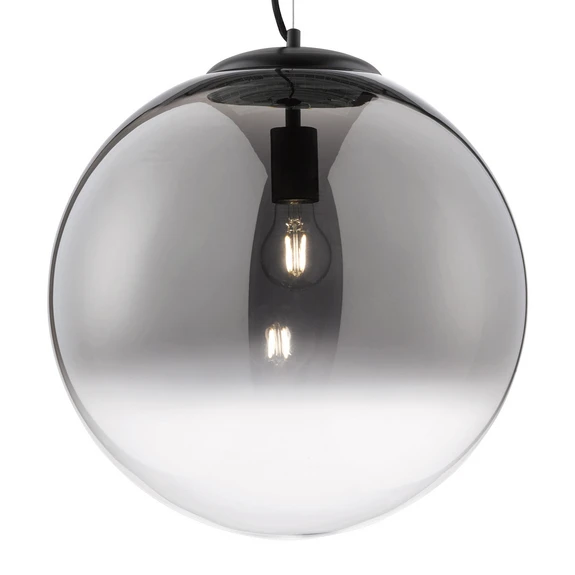 Speilpendel i glasslook Med sin uvanlige design er den runde Mirror-pendelen et trendy tilbehør til interiøret. Det sfæriske røykfargede glasset omslutter lyskilden som skal brukes, og skaper et interessant skjær. Fargen på glasset skjermer lyset slik at det ikke blender, mens de klare områdene i glasset gir fri sikt til lyskilden. For å sikre denne interessante lyseffekten og gi pendellampen et enda mer unikt utseende, anbefaler vi å bruke en lyskilde med glødetråd.