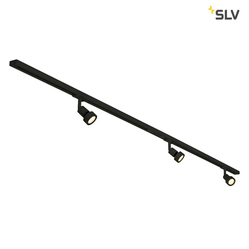 Puri-Track 1-krets strømskinnesett inkludert LED-lyskilder 3 lyskilder 1-krets høyspenningsskinnesett leveres med 2 x 1 m høyspenningsskinne, tre lampehoder med GU10 fatning, langsgående kontakt med matemulighet, to endestykker, tre dekorringer og tre LED-pærer med GU10-sokkel - Spottene kan dreies 340° og svinges 85° - Armaturene er egnet for lyskilder i energiklasse A++-E