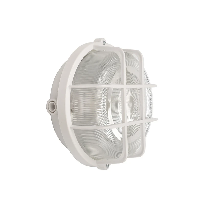 Sotano Retro sirkulær vegglampe for fuktige rom Sotano Retro vegglampe er utformet som et klassisk rundt koøye. Strukturen i polypropylenplast er robust (IK06) og beskyttet mot vannsprut (IP44), noe som gjør påbyggingslampen ideell for fuktige rom, kjellere, arbeidsområder og uteområder. Kabelinnføring er mulig fra ulike sider, og monteringen er svært fleksibel takket være flere festepunkter.