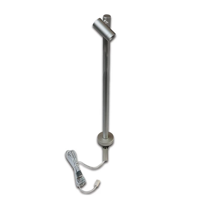 Denne LED-spotlight for innendørs bruk gjør seg uunnværlig på grunn av sine mange funksjoner, det være seg å belyse et utstillingsvindu eller å dyktig arrangere spesielle områder. Rackstangen er ganske enkelt z. B. installert i utstillingsgulvet, er tilkoblingskabelen med LED 24-plugg allerede inkludert. Den nødvendige transformatoren kan bestilles fra tilbehør. Rammen kan justeres i høyden med opptil 30 cm, lampehode kan ikke bare dreies 360 grader, men kan også svinges 300 grader, noe som gjør lysalternativene veldig fleksible. Strålevinkelen er 38 °. En LED-spotlight som kan brukes på en rekke måter i private og kommersielle områder.