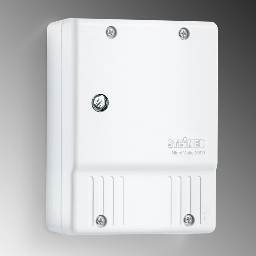 NightMatic 2000 registrerer lysstyrken i omgivelsene og slår automatisk på tilkoblede lys om kvelden når skumringsterskelen er nådd og slukker igjen ved daggry.