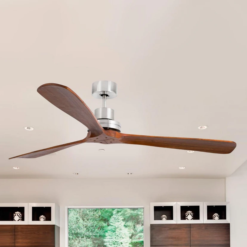 Lantau-G er en attraktiv takventilator med moderne design .Dette kommer godt frem i kombinasjonen av vinger i valnøtt og sokkelen i matt nikkel. Om sommeren sørger den for en frisk bris i rommet mens om vinteren fordeles den oppvarmede luften slik at oppvarmingskostnadene også kan reduseres. Lantau-G er lett å betjene via fjernkontrollen.