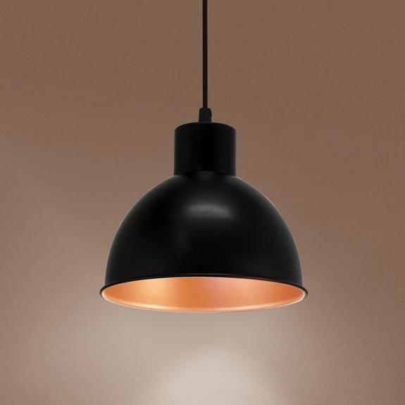 Svart hengelampe Andrin - innvendig kobber