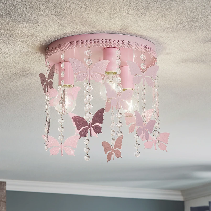 Taklampen Angelica i rosa med sommerfugler skaper en munter og livlig atmosfære i ethvert barnerom. Den er laget av robust stål og akryl og kombinerer lang levetid med et lekent design som stimulerer fantasien. Den rosa fargen og de delikate sommerfuglmotivene gjør den til et ekte blikkfang som gir ethvert rom et spesielt preg.