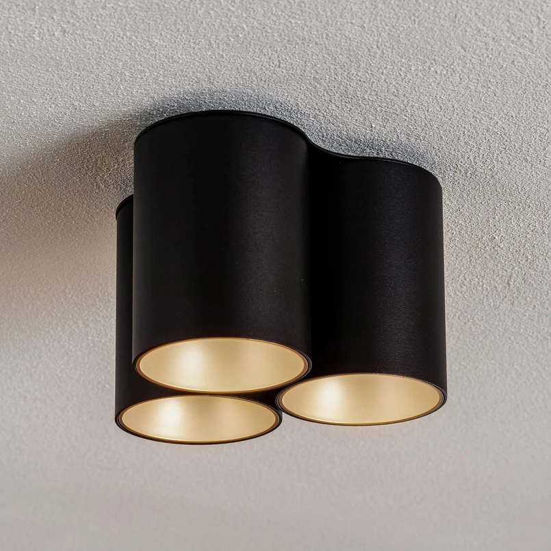 Taklampen Eye Tone III i svart/gull kombinerer moderne design med funksjonell allsidighet. Den er laget av høykvalitets stål og ABS-plast og passer perfekt inn i ulike oppholdsrom som stue, gang, kjøkken og spisestue. Den stilige kombinasjonen av svart og gull gir hvert rom et spesielt preg og skaper en harmonisk atmosfære.