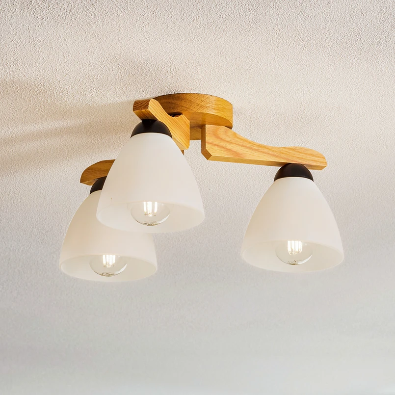 Taklampen Haro kombinerer moderne skandinavisk design med den naturlige skjønnheten til tre og glass. Konstruksjonen med 3 lyskilder i lys eik og hvitt sørger for en harmonisk lysfordeling i stuer, soverom og spisestuer. Muligheten for dimbarhet via en ekstern dimmer gir fleksibilitet i lysdesignet, slik at du kan skape den ønskede atmosfæren.