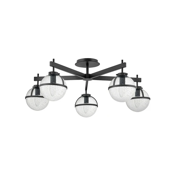 Taklampe Hollis, 5 lyskilder, svart/klar