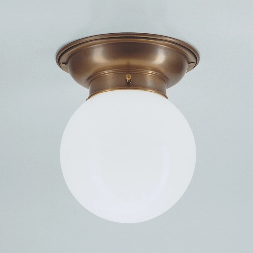 Jim-taklampen - klassisk glans og rent lys Jim-taklampen overbeviser med sitt bunnsolide utseende, formet av hvitt, munnblåst glass og en sokkel i Berlin-messing. Dette er en spesiell overflatebehandling som sikrer et produkt av høy kvalitet som er lett å rengjøre. Rengjøring anbefales kun med en tørr klut.
