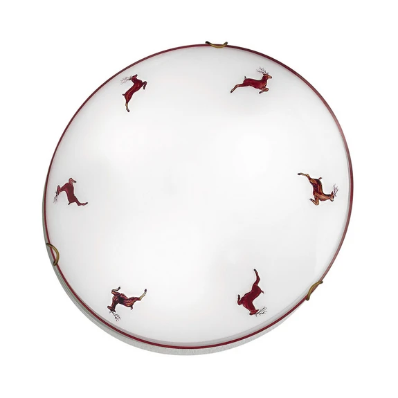 Designet til taklampe Nonna virker i utgangspunktet veldig enkel og klassisk rund. Straks legger man merke til det delikate hjortedyret, som hopper etter det andre som i en sirkel. Denne pene innredningen påføres håndblåst, hvitt glass og gjør hver lampe unik.