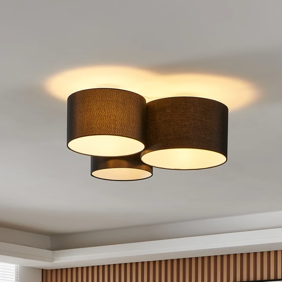 Taklampe Pastore 2, lengde 61 cm, svart, 3 lyskilder, stoff