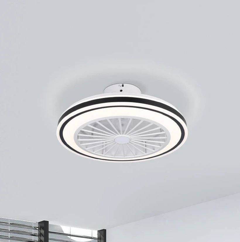 Takviften Almeria kombinerer funksjonen til en vifte og en fleksibel justerbar lyskilde. I den ringformede lampen med melkeaktig deksel er det installert LED-er som kan dimmes og endre lysfarge (2700 K - 6500 K) ved hjelp av den medfølgende fjernkontrollen. Viften kan også justeres fleksibelt med fjernkontrollen.