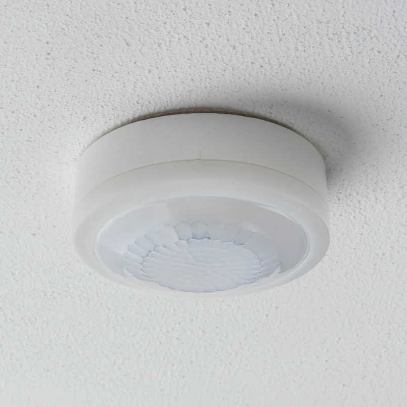 Rund, utenpåliggende tilstedeværelsesdetektor for innendørs og utendørs bruk Opplev en ny standard for intelligent lysstyring med tilstedeværelsesdetektoren LUXA 103 S360-100-12 AP. Denne passive infrarøde tilstedeværelsesdetektoren (PIR) av høy kvalitet er utviklet for utenpåliggende montering i taket og imponerer med sin avanserte teknologi og moderne design, som enkelt kan integreres i ethvert romkonsept. LUXA 103 S360-100-12 AP er den ideelle løsningen for innendørsarealer som kontorer, konferanserom, server- og installasjonsrom i offentlige bygninger (eller til og med i ditt eget hjem). Med en generøs registreringsvinkel på 360° og en rekkevidde på opptil 12 meter sørger denne tilstedeværelsesdetektoren for at belysningen aktiveres nøyaktig når det er behov for den - effektivt og pålitelig. Med den passive infrarøde tilstedeværelsesdetektoren for takmontering kan opptil 400 lysdioder styres, også via en ekstern trykknapp for manuell innkobling. LUXA 103 S360-100-12 AP er svært enkel å montere, og takket være den robuste konstruksjonen er den spesielt holdbar. Den har blant annet en innlæringsfunksjon, en pulsfunksjon, en testfunksjon og en trappebelysningsfunksjon. Innstillingene kan gjøres via fjernkontroll, APP eller potensiometer. LUXA 103 S360-100-12 AP er også egnet for utendørs bruk med kapslingsgrad IP 54. Endring av installasjonsstedet reduserer registreringsområdet