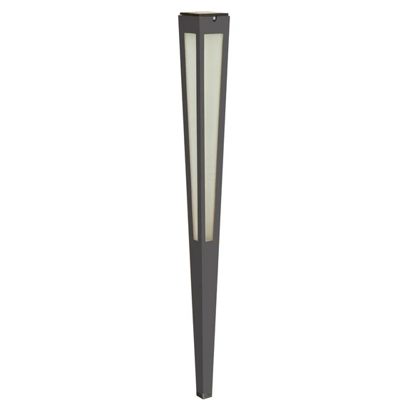 Dekorativ Tinka LED-solfakkel for utendørsarealer: integrert bevegelsessensor Denne LED-solfakkelen er en ekte allrounder. Den robuste lommelykten i ekstrudert og pulverlakkert aluminium er utstyrt med jordspyd i rustfritt stål og kan stikkes ned i bakken hvor som helst på plenen, i blomsterrabatten eller mellom buskene. Tinka er utstyrt med bevegelsessensor og egner seg også utmerket til å lyse opp stier. En svært energieffektiv lyskilde som lades opp av solenergi i løpet av dagen. Tinka LED-fakkel kan ikke bare lades via solcellemodulen, men også via strømnettet ved hjelp av en USB-kabel ved behov - Dimbar - Lysvarighet: 5 til 200 timer Merk: Hvis det ikke er mulig å forankre fakkelen i bakken ved hjelp av jordspydet, kan en sokkel kjøpes som tilbehør.