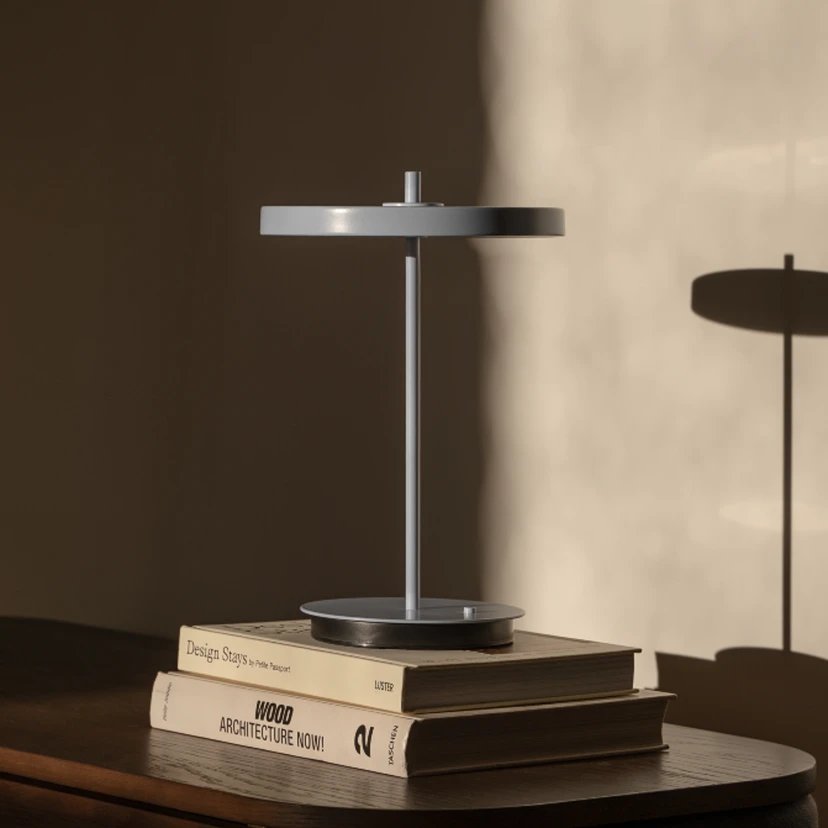 LED-bordlampe Asteria Move med oppladbart batteri for bærbar funksjon Grasiøs og utstyrt med utrolig bevegelsesfrihet, LED-bordlampen Asteria Move fra det danske designhuset UMAGE kan brukes hvor som helst i hjemmet. Takket være det innebygde litium-ion-batteriet kan lampen lyse i opptil 35 timer i gjennomsnitt uten strømtilkobling. Batteriet kan lades via en USB-C-kabel. Den runde lampeskjermen har varmhvite LED-lamper som avgir et koselig og behagelig lys som er blendfritt, mykt og jevnt fordelt på alle sider takket være den integrerte diffusoren. Berøringsdimmeren på den runde, massive sokkelen gjør det mulig å dimme lyset til fire ulike lysstyrkenivåer ved å trykke på bryteren flere ganger. Asteria-kolleksjonen er designet av medstifter og Chief Creative Developer, Søren Ravn Christensen. Designeren er selvlært og har en sjelden evne til å kombinere design og økonomi. Han sier om kolleksjonen: "Asteria-kolleksjonen, som er skapt i skjæringspunktet mellom design, teknologi og håndverk, har integrerte LED-lys i en slank, minimalistisk form." Sammen med nåværende administrerende direktør, Jacob Nannestad Hansen, grunnla Christensen selskapet UMAGE by VITA copenhagen i 2008. Produsenten av designerlamper legger særlig vekt på bærekraftige materialer og teknologi av høy kvalitet i produksjonen av armaturene sine for å kunne tilby kundene størst mulig nytte. Konseptet er en suksess. I dag har det danske belysningsselskapet over 1500 filialer i mer enn 50 land over hele verden - bærbar - batteridrevet - lysstyrken kan justeres i fire nivåer: 1. nivå 5 lumen ca. 168 timer 2. nivå 20 lumen ca. 50 timer 3. nivå 50 lumen ca. 20 timer 4. nivå 100 lumen ca. 10 timer
