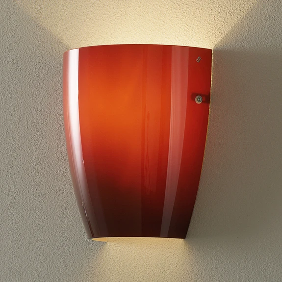Vegglampe Dafne - allsidig ekstra lyskildeVegglampen Dafne ligger i en myk halvsirkel inntil veggen. Den dekorative skjermen av farget, gjennomsiktig glass er litt bredere øverst enn nederst og er utstyrt med et lysuttak på begge sider, slik at lyset sendes både oppover og nedover, men også trenger gjennom det lett gjennomsiktige glasset og skaper en svært stemningsfull atmosfære.denne vakre vegglampen er et absolutt blikkfang i seg selv, som forskjønner enhver vegg - plassert parvis eller på rad, lyser den også opp en større gang eller en lang romvegg på vakreste vis.med munnblåst, flerlags glass