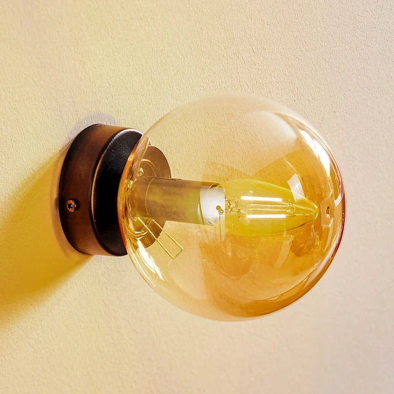 Vegglampe Glassy, svart, rav, glass, E14, Ø 14 cm