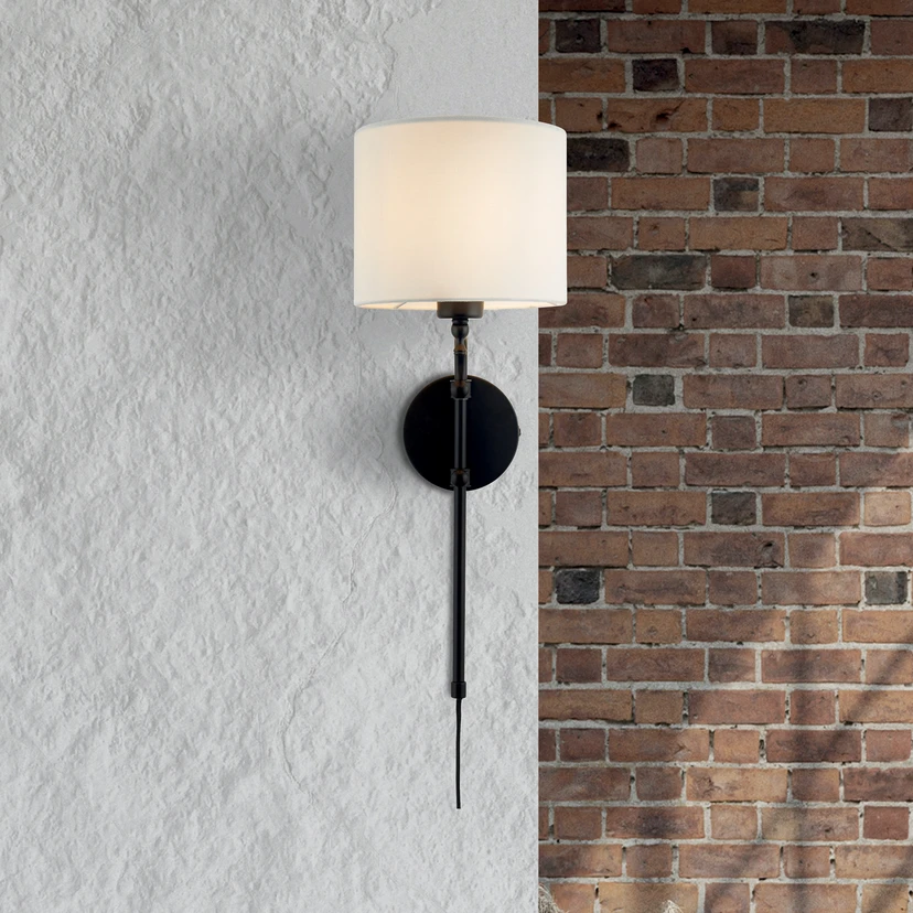 Vegglampe München, støpsel, svart/hvit, lin, justerbar