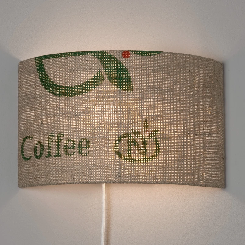 vegglampe N°67 perlebønne med plugg - skjerm laget av brukt kaffesekk