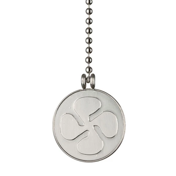 Den dekorative trekkjeden er utstyrt med en viftemedaljong i børstet nikkel og har en 30,5 cm lang, falset kjede.
