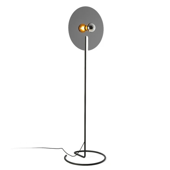 Imponerende Mirro gulvlampe med speileffekt Hvis du er på jakt etter en spesiell lyskilde til stuen eller soverommet, er Mirro gulvlampe det ideelle alternativet. Fra den moderne, svarte metallrammen stikker en metallskive opp i rommet, og i midten av denne er stikkontakten til lyskilden plassert. Når man kaster et blikk på aluminiumsskiven, som er svart på den ene siden og blank på den andre, skjønner man at armaturens navn er valgt med referanse til det engelske ordet "mirror" (speil), ettersom alle gjenstander innen rekkevidde reflekteres i den blanke overflaten, slik at Mirro skaper en behagelig stemningsbelysning med en glamorøs tilleggseffekt. Som lyskilder egner seg for eksempel hodespegellamper (se tilbehør) - Utstyrt med en fotbryter på kabelen for enkel betjening